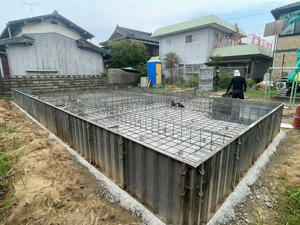 頑丈な基礎にするために、博愛では鉄筋を通常(30㎝)より間隔を狭めて(20㎝)配筋することで基礎をより強固にしていきます。