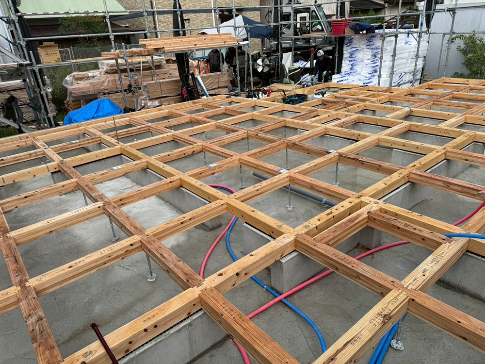 糟屋郡O様邸の施工状況:土台工事・棟上げ