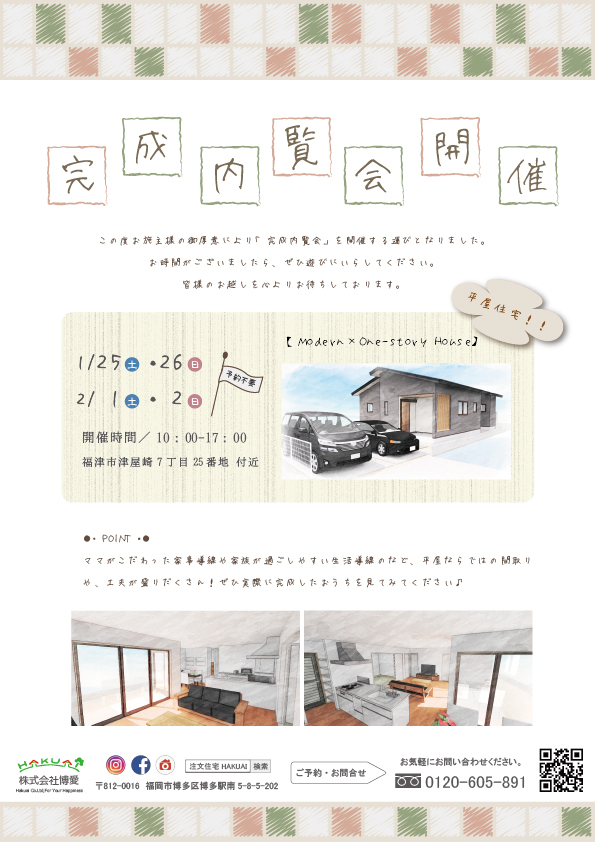 2020年1月25日・26日・2月1日・2日 福津市のモダン×平屋の家 完成内覧会