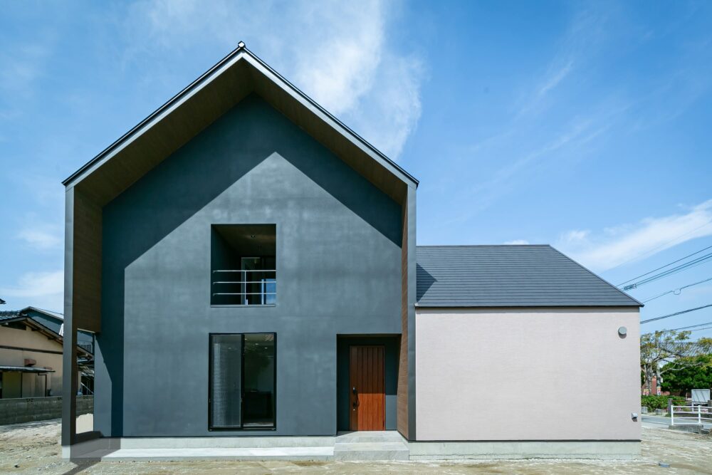 屋根の形と高さがつくる、凛とした美しいシルエットの外観。大きな屋根が生み出す影が、奥行きを与え日常の中に心地よい変化をもたらします。