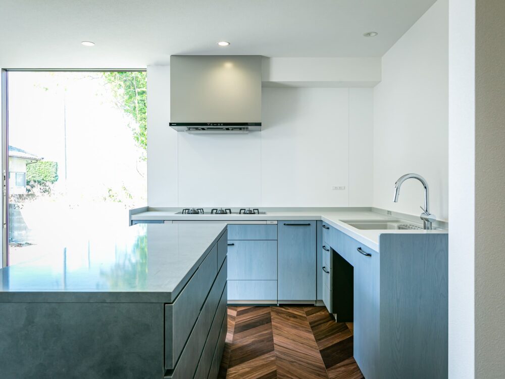 キッチンは空間の主役として上質な存在感を放ちます。回遊動線にすることで、行き止まりのないスムーズな移動で日々の家事を快適におこなえます。